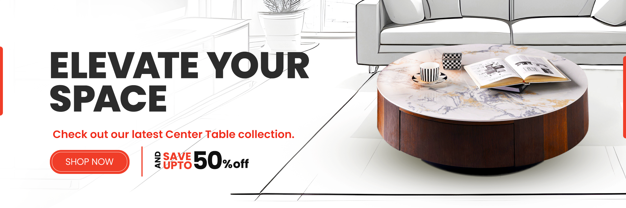 Avesta Center Table With Marble Top And Iron + Metal Base