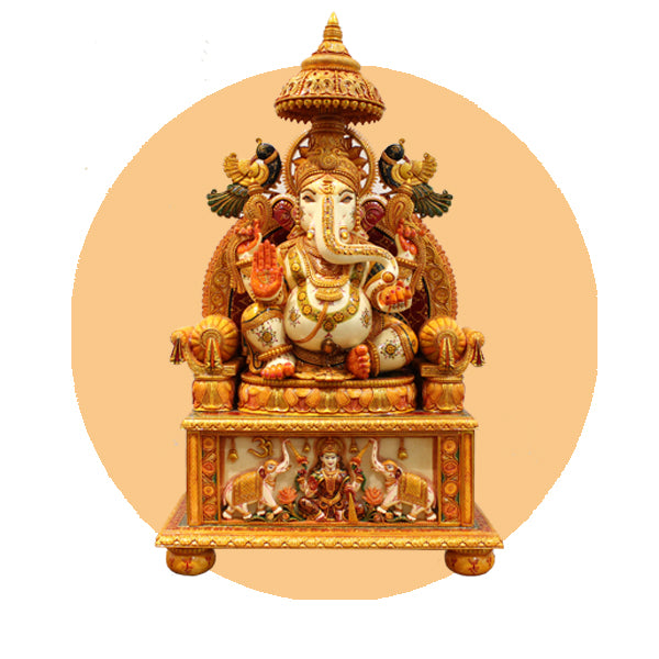 Lord Ganesha sitting on ganesha pedestal Idol Ivory made of Soft stone - 9 x 5 x 18 Inch, 5.8 Kg