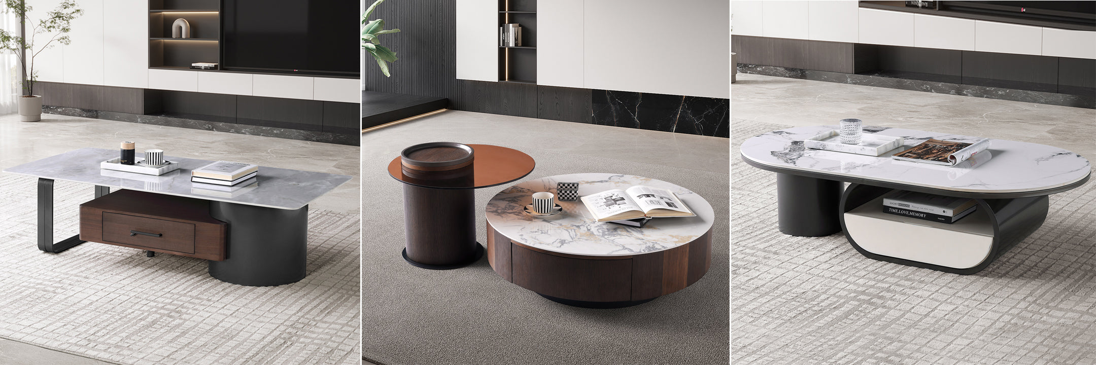 Alaska Center Table With Marble + Glass Top And Iron + Metal Base With Storage